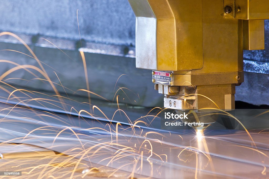 Iron pipe cutting saw for metal with bright sparks close up. SAW CUTTING